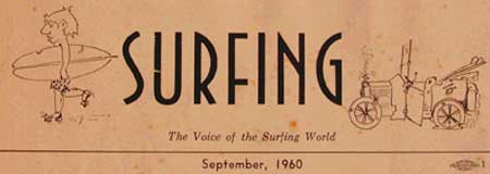 Before he rose to fame as a war correspondent John, around 1960, cut his journalistic teeth by starting a little newspaper Called “Surfing”. As I recall, the offices (?) for this little venture were on a second story in a building somewhere in Santa Monica. How I arrived at this office I’m not quite sure but I was there to discuss my creating a masthead for the paper as well as to contribute some cartoons. Being the tough negotiator that I was then we settled on the princely sum of $20.00.